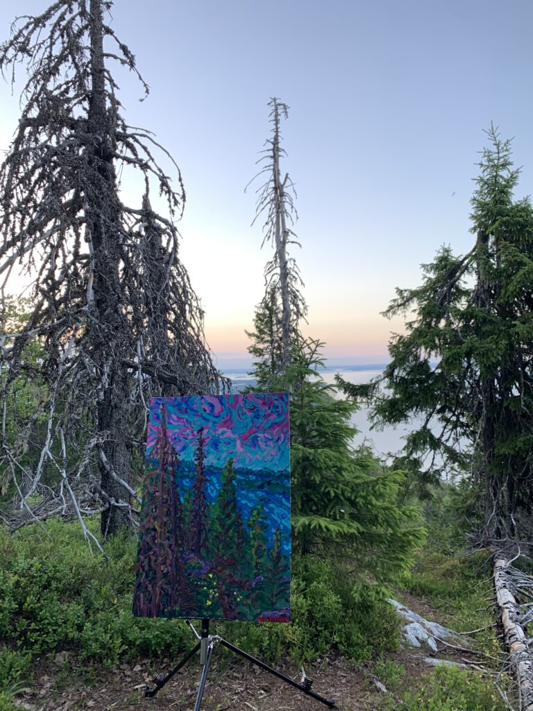 I love to paint outdoors whenever I can, capturing nature in its truest form. With my trusty French easel, I travel through Finland’s national parks, from my nearby dense forests of Kivinokka in Helsinki to the rugged heights of Koli in North Karelia. Through my art pilgrimages to North Karelia, I’ve returned to the landscapes where I grew up, and which inspired the masters of realism and romantic nationalism such as Akseli Gallen-Kallela, Albert Edelfelt and Eero Järnefelt.