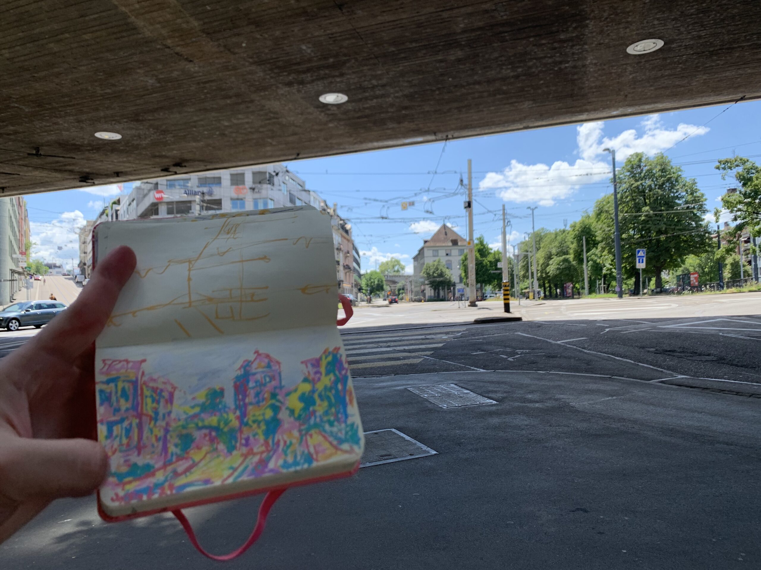Every painting begins as a conversation in my sketchbook. Using acrylic pens, I capture the essential lines of a landscape or the skeleton of a tree. These initial sketches work as the foundation when I move to a larger surface.